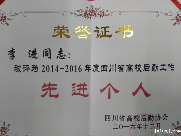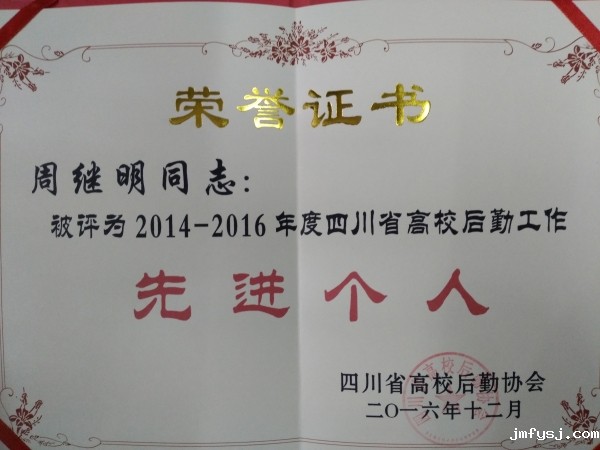 2017年5月17日,全省高校后勤协会二届七次年会在成都师范学院隆重召开。协会正副会长、理事、正副秘书长以及会员单位分管后勤工作的校(院)长、后勤部门主要负责人、全省高校后勤首批入库专家代表等共计190余人参加了年会。 (2).png) 会上,省教育厅对获得2014-2016年度四川省高校后勤工作先进集体和先进个人进行了表彰。我校荣获“2014年-2016年度四川省高校后勤工作先进集体”荣誉称号。周继明、李进二位同志荣获“2014-2016年度四川省高校后勤工作先进个人”称号。 (2).png)   在今后的工作中后勤管理处将紧紧围绕学校中心任务,适应和服务学校发展的新常态,稳步推进标准化后勤建设,努力为广大师生员工提供更优质的服务,为学校内涵和外延发展做出新的贡献。 (图/文 后勤管理处) |