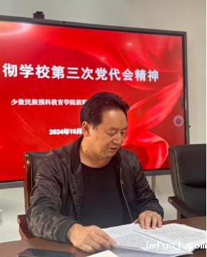 为深入贯彻落实学校党委的部署要求,全面推进学校第三次党代会精神在预科教育教学管理工作中落地落实,2024年10月15日14:30,少数民族预科教育学院在党员活动室召开教职工专题学习会,学习贯彻学校第三次党代会精神。学习会由预科教育学院党委书记马史火主持,全院教职工参加了会议。