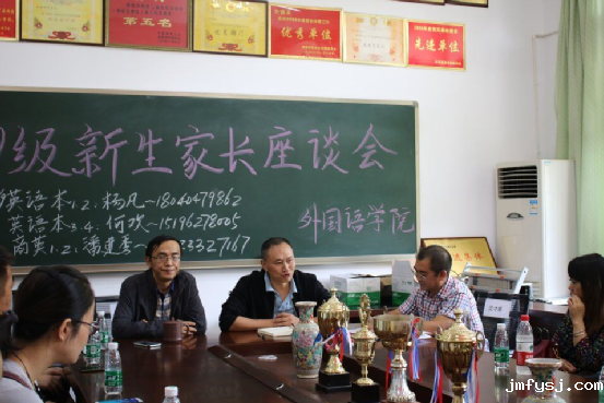 为了促进学院与家长间的相互交流与沟通,推动家校共管机制的发展,我院于2019年9月5日上午10:30在外文楼会议室召开了2019级新生家长座谈会。参加此次会议的有外国语学院院长黄涛教授、外国语学院党总支副书记杨永清副教授、学生科科长沈才顺老师、应用英语与翻译教研室主任黄莺老师、分团委负责人刘姣凤老师、辅导员潘建秀老师、何欢老师、杨凡老师以及学生家长代表。此次会议由沈才顺老师主持,对新生家长们的到来表示热烈欢迎。