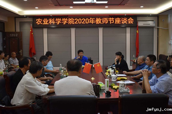 2020年9月8日下午,农业科学学院在1202会议室召开以“ 立德树人奋进担当 教育脱贫托举希望”为主题的庆祝第36个教师节座谈会。学院全体教师、退休教师代表参加座谈会。学校党委书记彭正松教授参加了座谈会并与在座的老师们亲切交谈、共话学院发展。会议由学院分党委书记江文世教授主持。